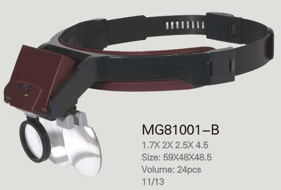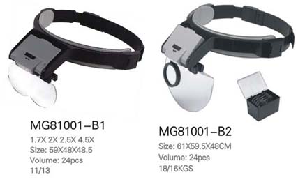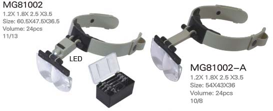 81001F: Proffessional headband magnifier with detachable, 1 super brightness LED spotlight/flashlight, 1.2x, 1.8x,2.5x,3.5x lens available, 24pcs/ctn. |